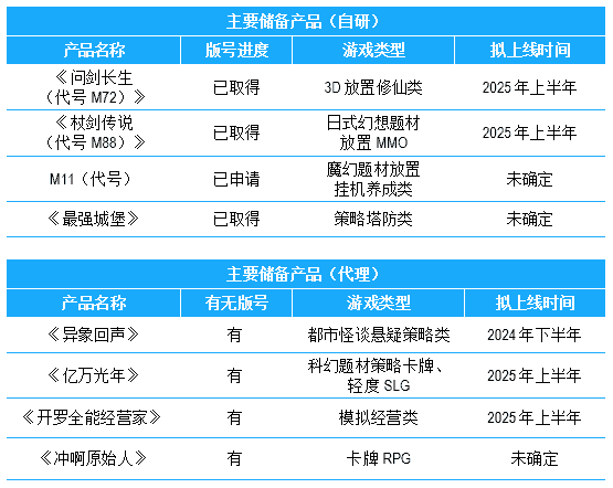 公司储备多款新品,,期待为玩家解锁更多新鲜体验,,部分产品如下表所示::::