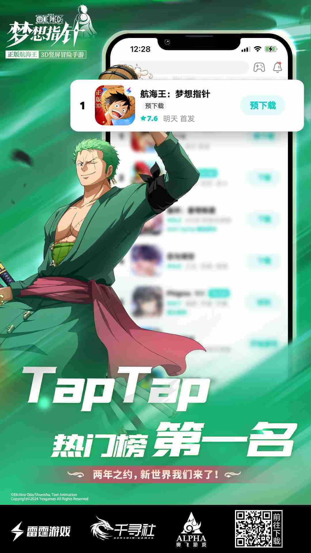 《航海王:::梦想指针》登顶App Store免费榜,,,公测福利汇总!!!